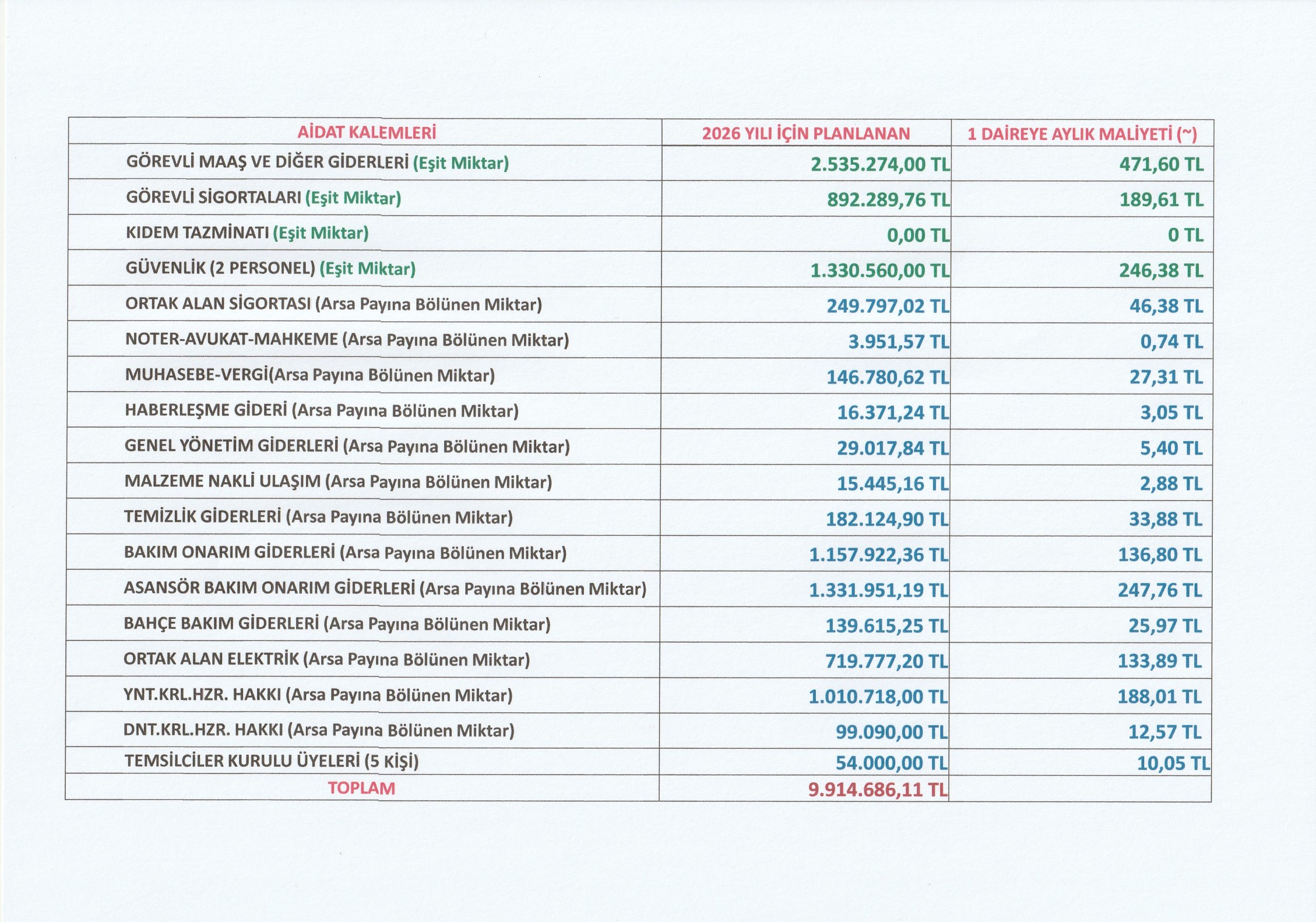 2026 YILI AİDAT KALEMLERİNİN DETAYLARINI VE BİR DAİREYE OLAN MALİYETİNİ GÖRMEK İÇİN TIKLAYINIZ